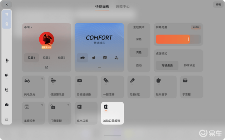 (1)中控屏下拉菜单,点击「加油口盖解锁」,即可解锁